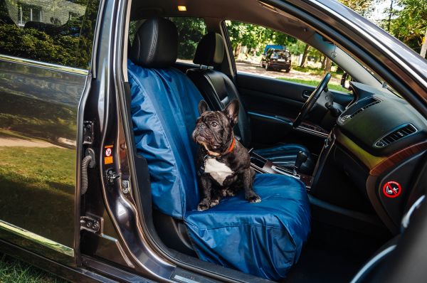 Универсальный чехол для перевозки собаки на переднем сидении автомобиля.