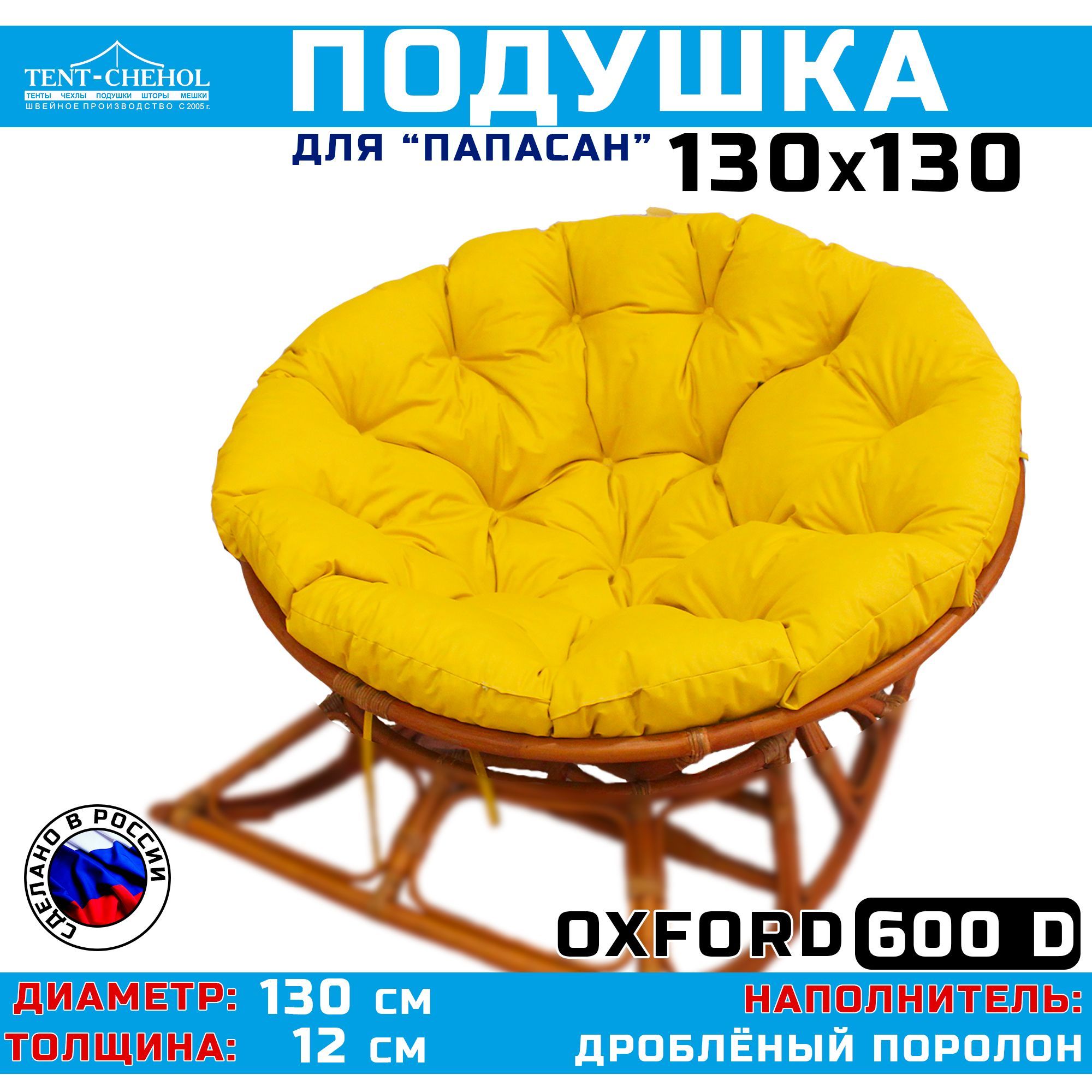 Купить Подушка для (Папасан) 130 см, желтая (Оксфорд 600) цена 3500 руб. в Москве и СПб с доставкой по России