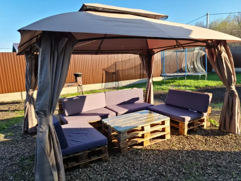 Комплект крыша-тент и шторы на садовый шатер - это универсальное решение для создания комфортного и уютного пространства на открытом воздухе. Конструкция состоит из прочного тента, который крепится к шатру, и набора штор, которые позволяют создать дополнительную защиту от солнца, ветра и дождя. Крыша-тент и шторы выполнены из высококачественных материалов, которые обладают прочностью и долговечностью. Они легко устанавливаются и быстро снимаются, что позволяет использовать их в любых условиях. Благодаря своей универсальности, комплект крыша-тент и шторы на садовый шатер станет идеальным выбором для проведения праздников, пикников и других мероприятий на открытом воздухе.