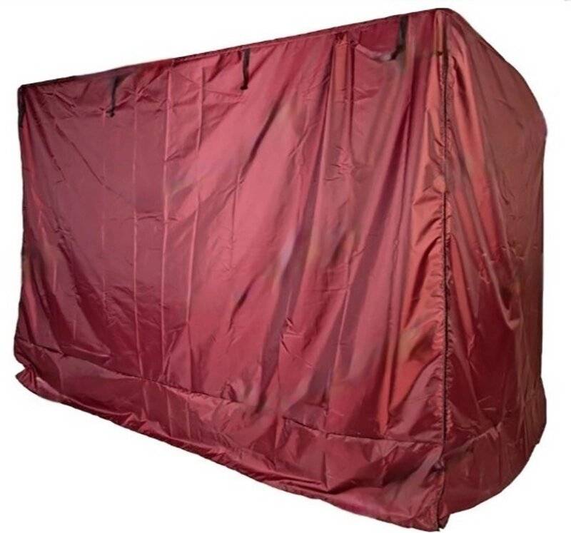 Мы хотим предложить вам купить чехол для садовых качелей пилот/вираж 225 х 148 х 170 см. Выполнен данный чехол в бордовом цвете, также он может иметь другие расцветки. При изготовлении чехла мы использовали плотный синтетический материал, который не пропускает влагу. Чехол можно использовать и в зимнее время, а ночью он способен защитить качели от домашних и бродячих животных, днём закрывает отдыхающих от солнца и дождя. Если вам хочется покачаться на качелях, но на улице плохая погода, вы просто можете надеть чехол и закрутить переднюю стенку, закрепив её при помощи специальных креплений.
