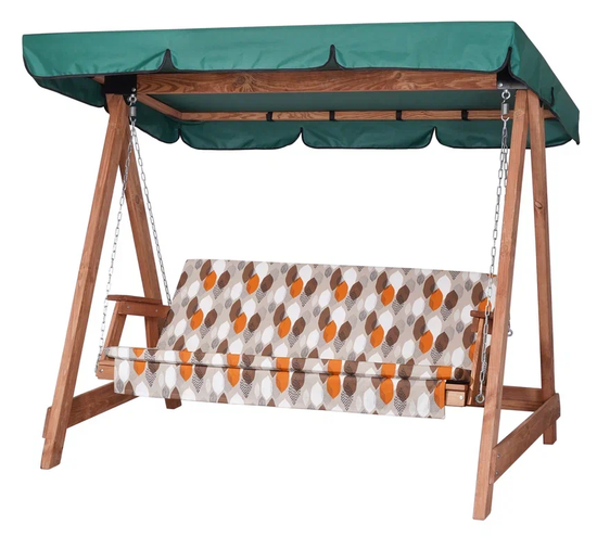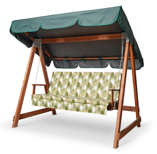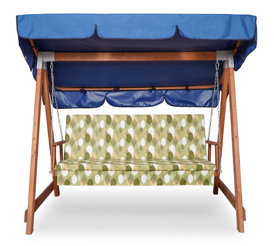 У нас вы можете приобрести цветной матрас с расцветкой листьев, это достаточно осенняя и привлекательная расцветка, предназначен матрас для садовых качелей. Изготовлен матрас из европейской ткани с тефлоновым покрытием, в качестве наполнителя используется холлофайбер. Длина изделия составляет 155 см, толщина 5 см, глубина сидения 49 см, а высота спинки 55 см.