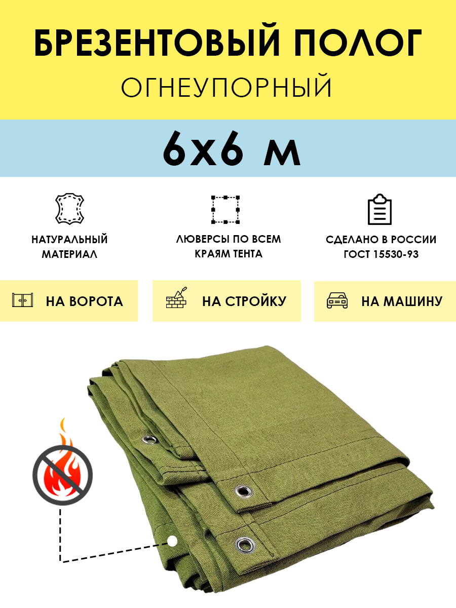Краткое описание «Полог брезентовый огнеупорный 6x6 м, с люверсами (стандарт)»